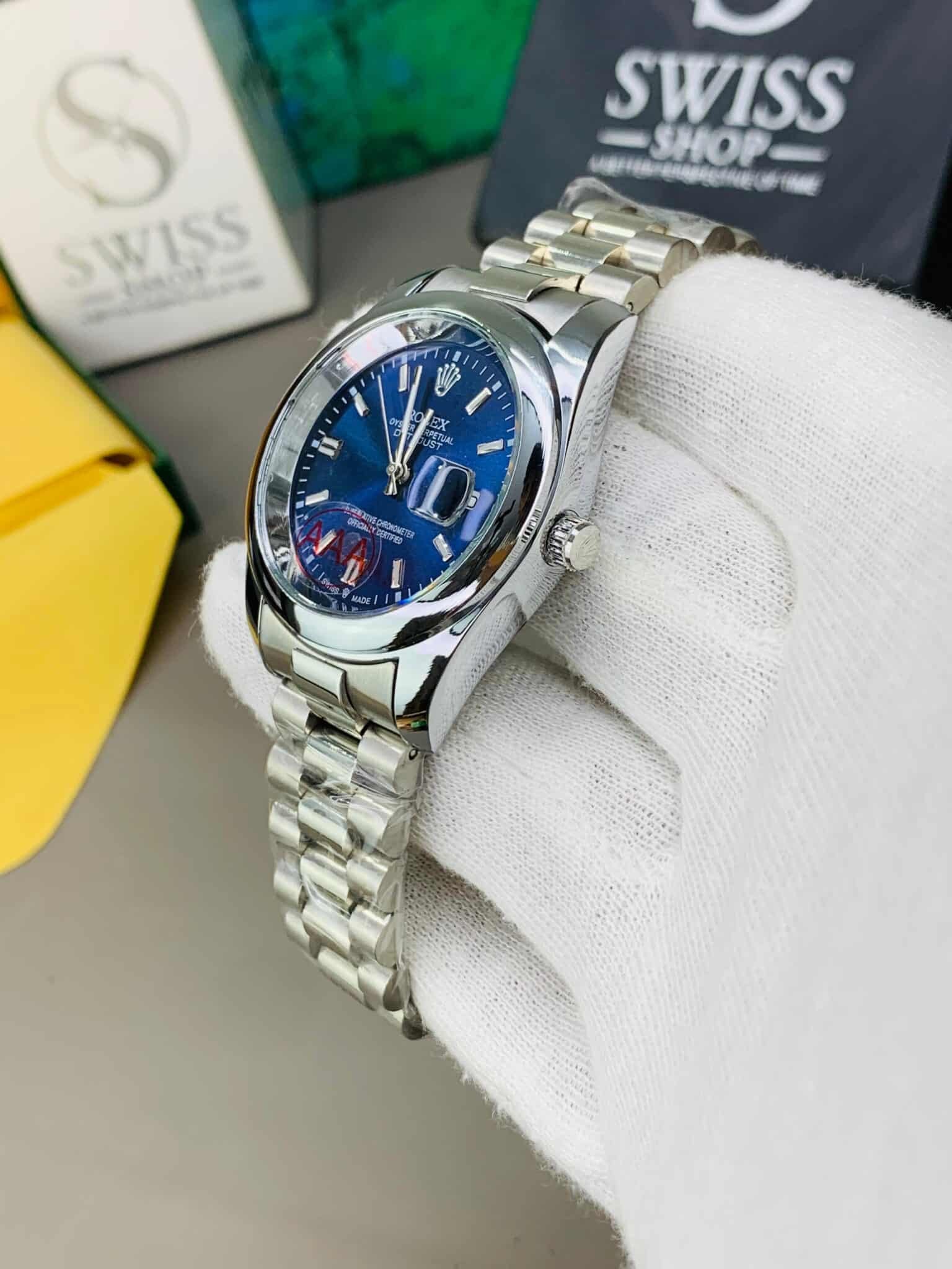 Oyster Perpetual Blue Dial Silver Chain.