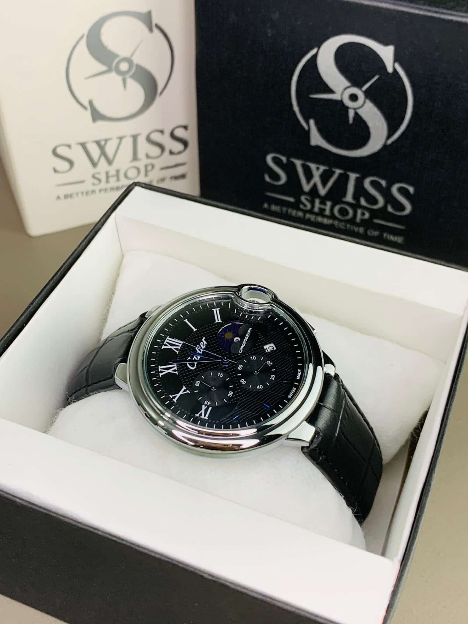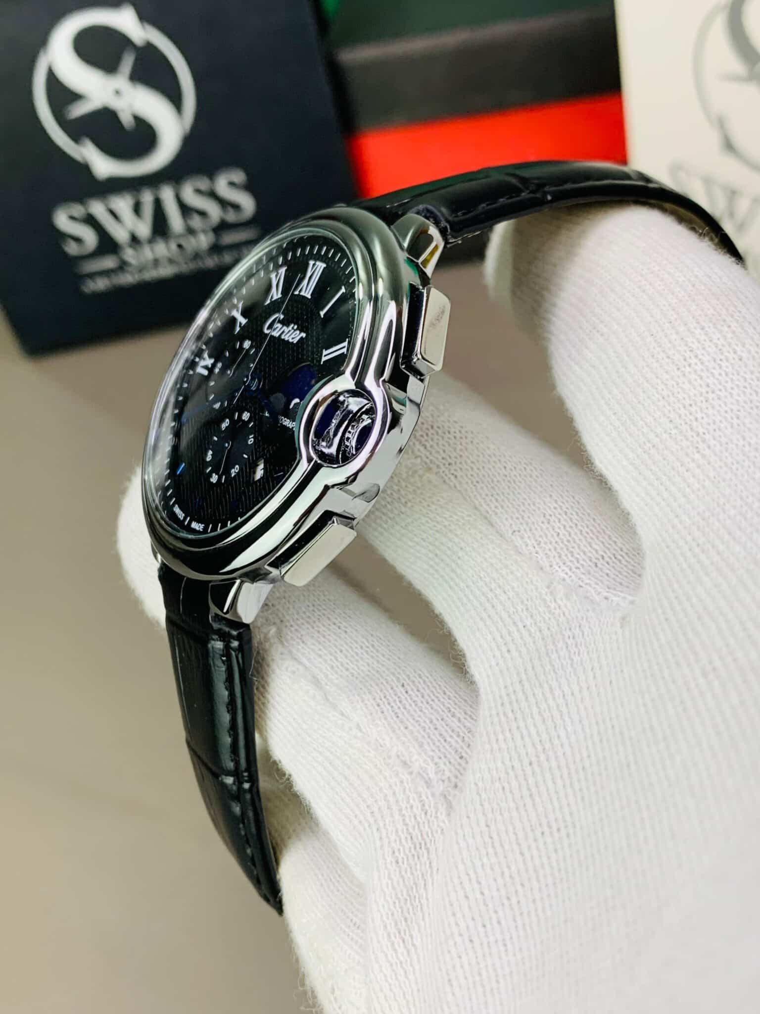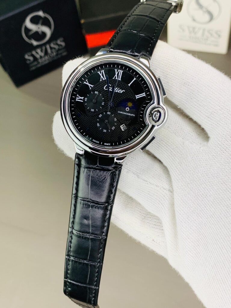 Silver Dial With Black Leather Strap Chronograph Watch ( Automatic Movement )