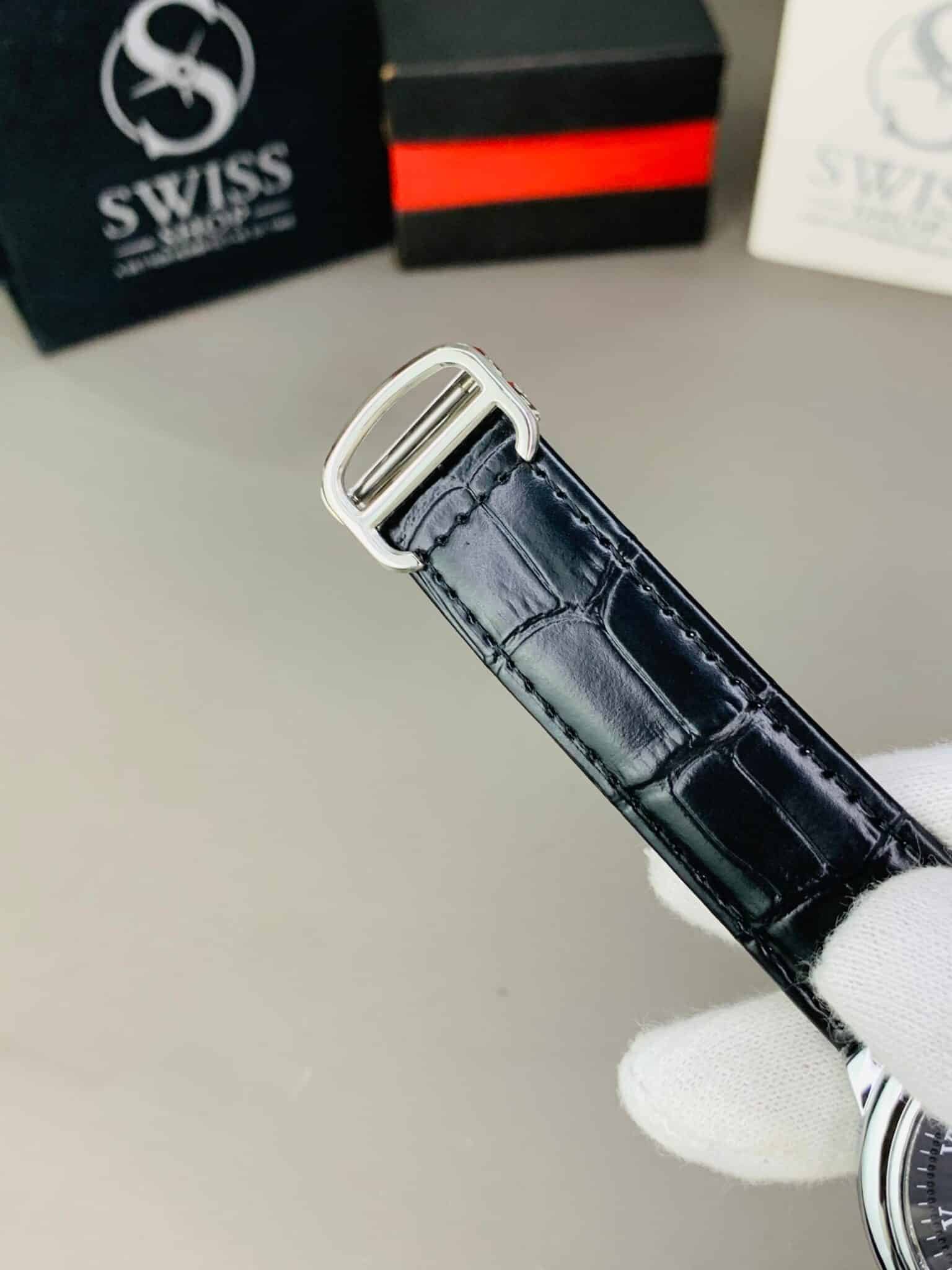 Silver Dial With Black Leather Strap Chronograph Watch  ( Automatic Movement )